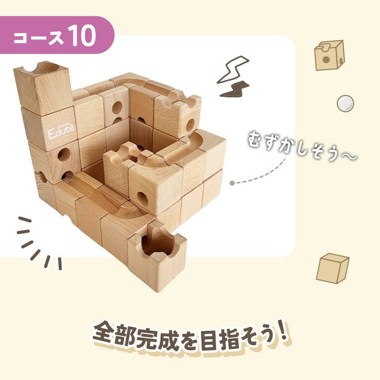 ビー玉が転がるコースを組み立てるのは思ったよりも頭を使い、最初は少し難しく感じました。