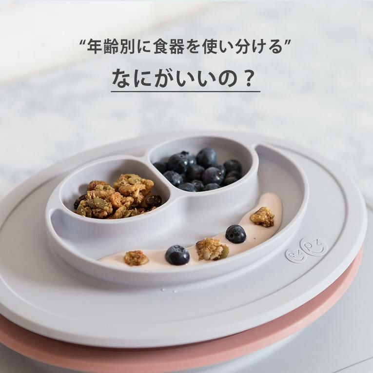 人気のezpz (イージーピージー)から離乳食初期にぴったりなタイニーボウルが登場! ピューレなどのトロミのある食材に最適なボウル。 テーブルに張り付いて剥がれないので赤ちゃんが食べ物に集中してお食事できます。持ち運びに便利な収納ケース付き。