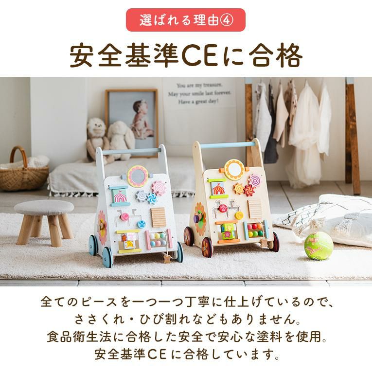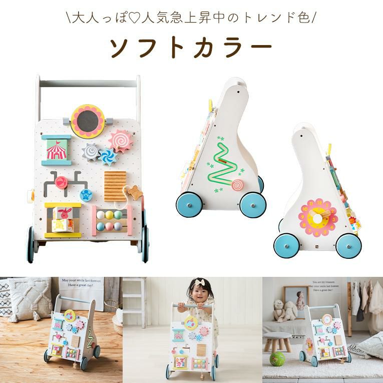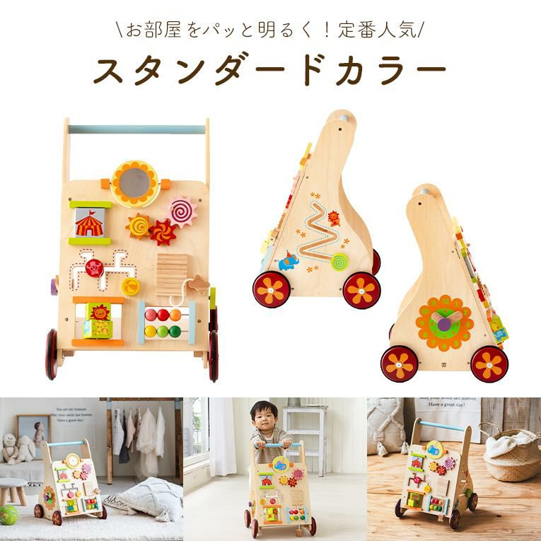 | 備考 | 押すだけじゃない!指先を使う知育パーツがたくさんついている木のおもちゃの手押し車です。赤ちゃんも夢中になるウォーカー。