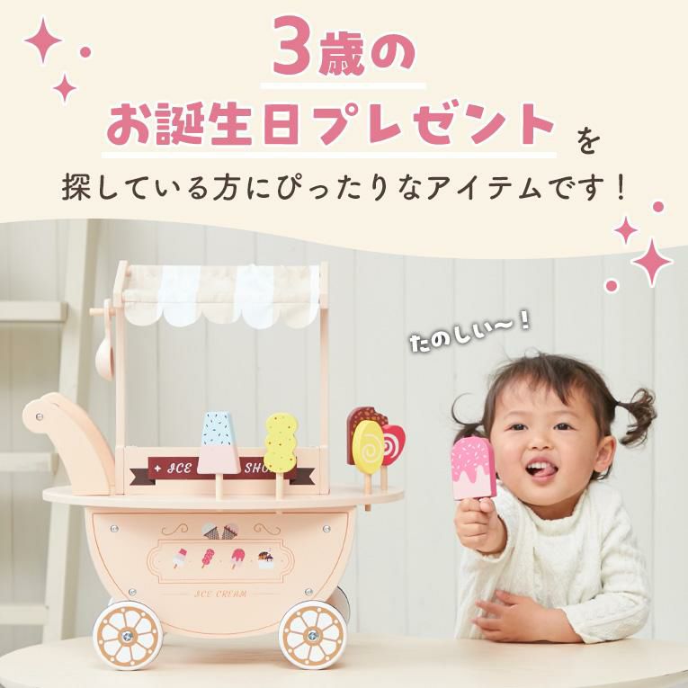 備考 カラフルなアイスクリームやコーンが揃った、夢のアイスクリーム屋さんごっこが楽しめる木製おままごとセット。