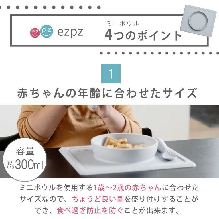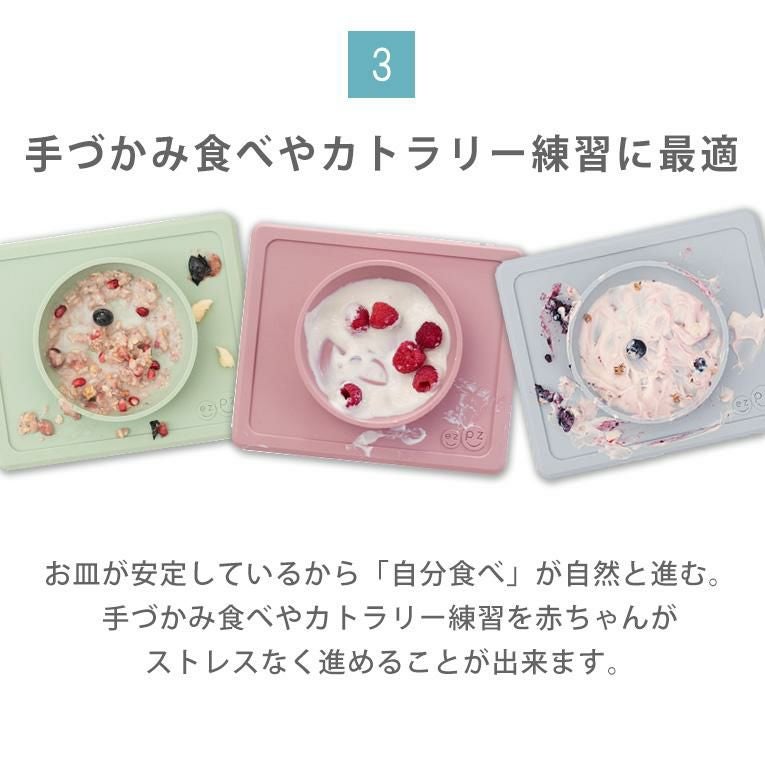 手づかみ食べにはひっくり返らない離乳食食器「ezpz(イージーピージー)」が活躍します。
