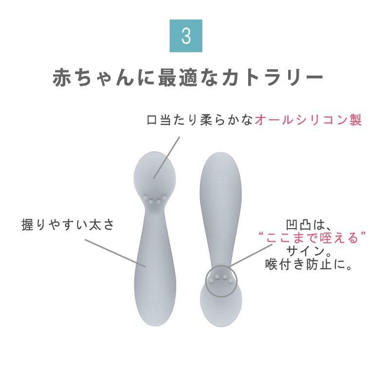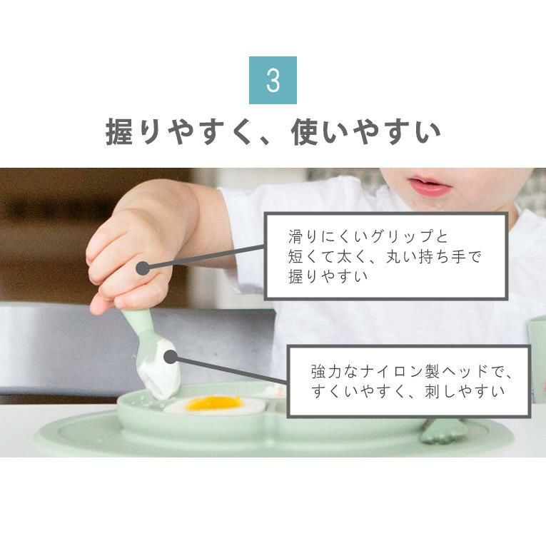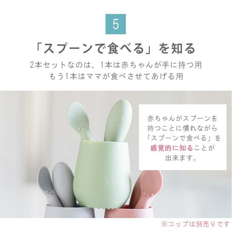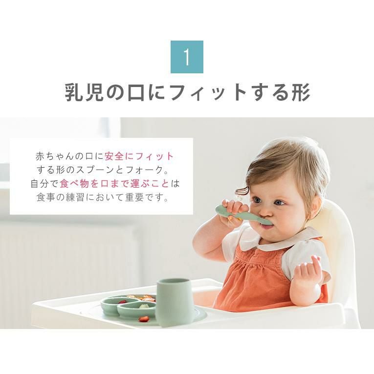 コップやスプーンなどのカトラリーも「赤ちゃんが自分で食べる」練習に必要なアイテムです。