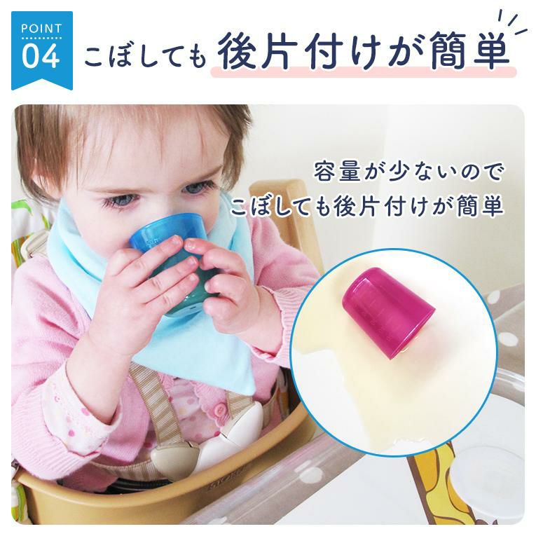 ・コップの淵の直径が小さいので小さな口でも飲みやすい+こぼれにくい