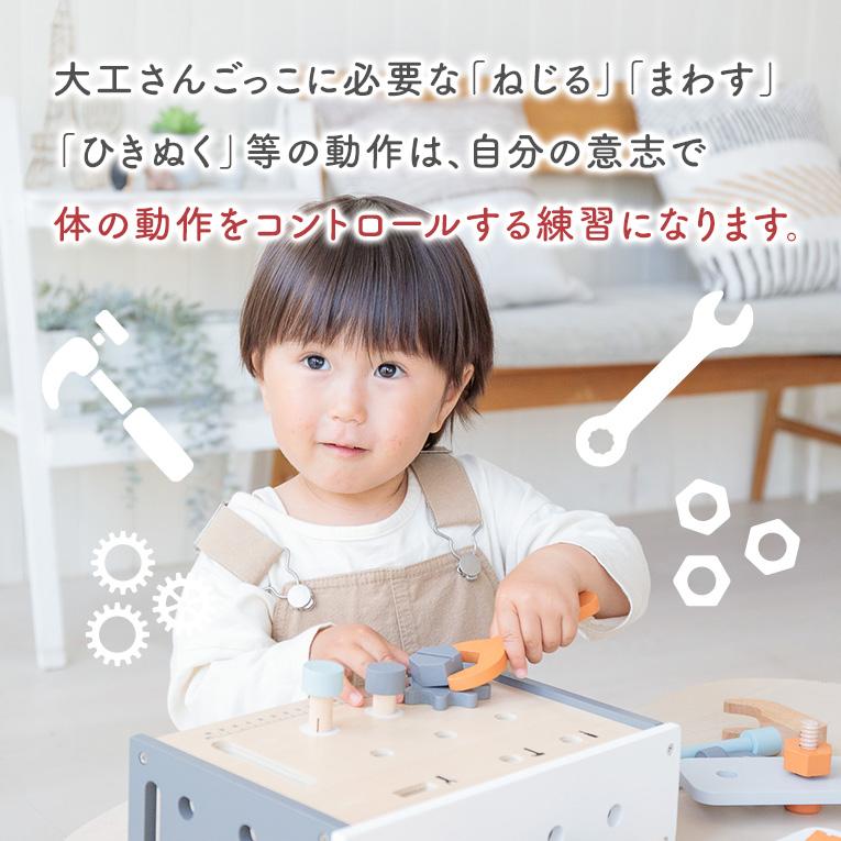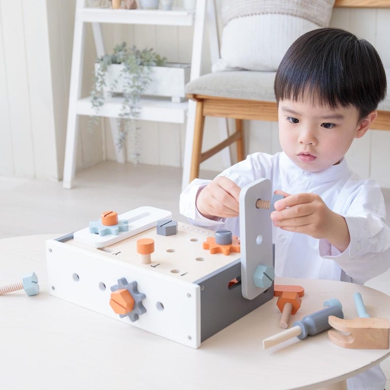 叩いて、ねじって、作ってみる! ごっこ遊びから本物体験へ──はじめての大工さんセット【テーブルワークベンチ】
