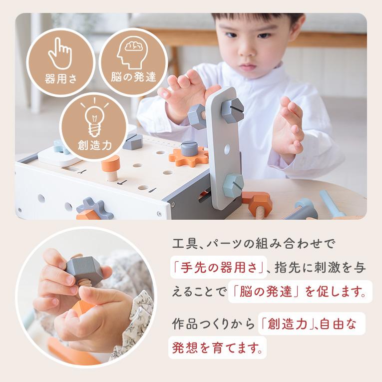 この【テーブルワークベンチ】は、ただのごっこ遊びを超えた、“考えて・動かして・完成させる”知育体験を届けてくれます。