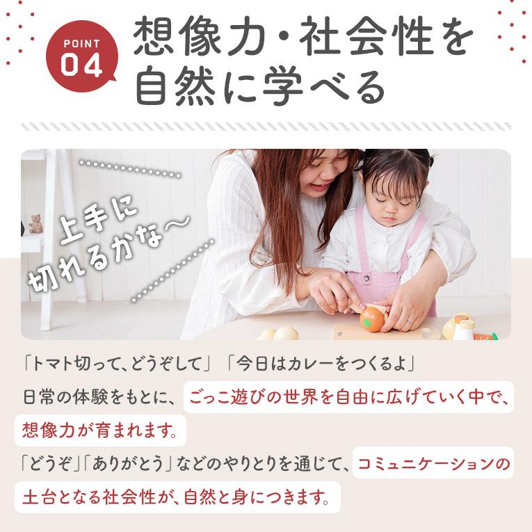 お料理に興味が出てきたら、「はじめてのおままごと」にぴったりの【おままごと食材セット】。