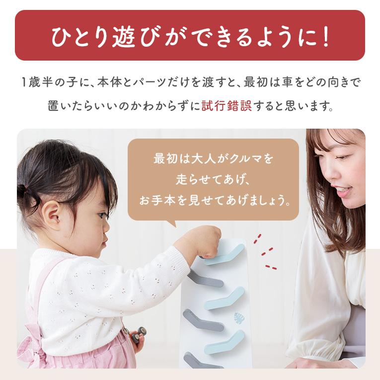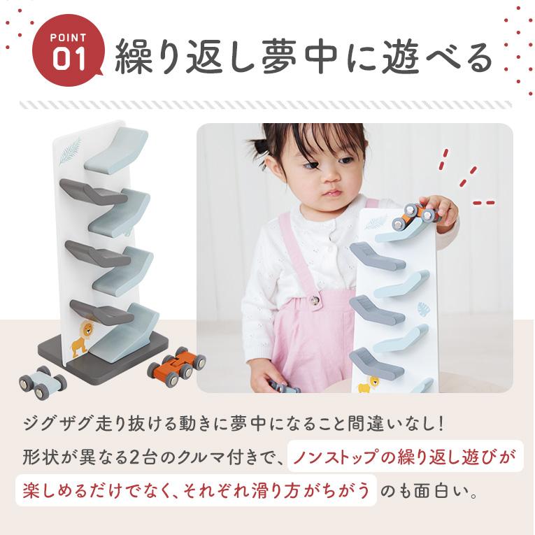 形状が異なる2台のクルマ付きで、ノンストップの繰り返し遊びが楽しめるだけでなく、それぞれ滑り方がちがうのも面白い♪