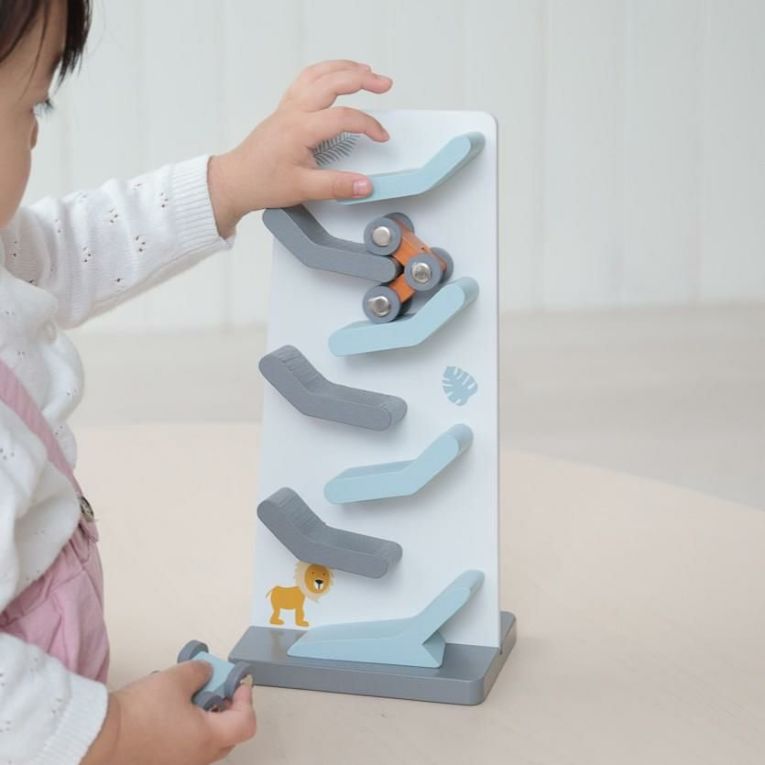 実際に遊ばせてみると、カタンカタンとくるまが転がるたびに「おぉ〜!」と目を丸くして夢中に。何度も繰り返し遊んでくれるので、その姿を見ているだけで本当に癒されます。一緒に「良い音だね〜」と声をかけながら遊べるのも嬉しくて、孫との楽しい時間がまたひとつ増えました。