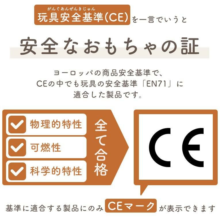 国内外の厳しい安全試験にも合格している安全なおもちゃなので、安心して遊ばせることができます。