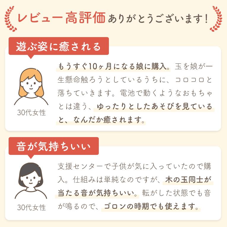 「カラカラ」「コロコロ」というやさしい音が、耳に心地よく響きます。