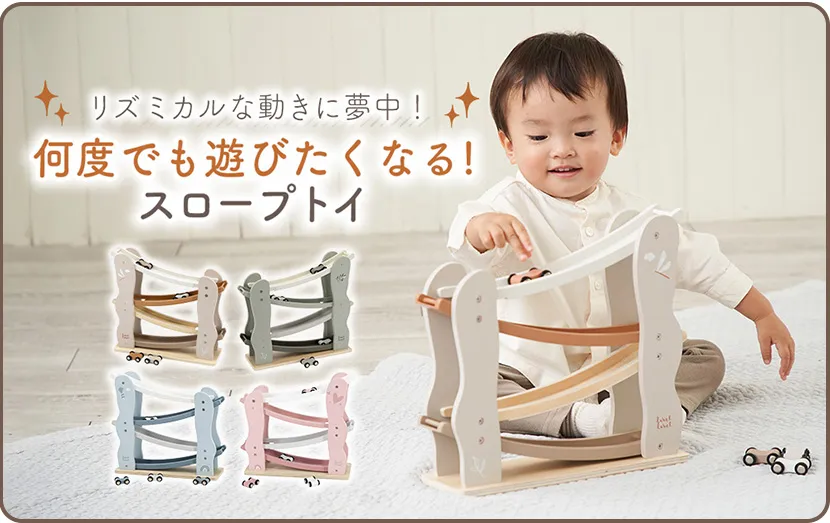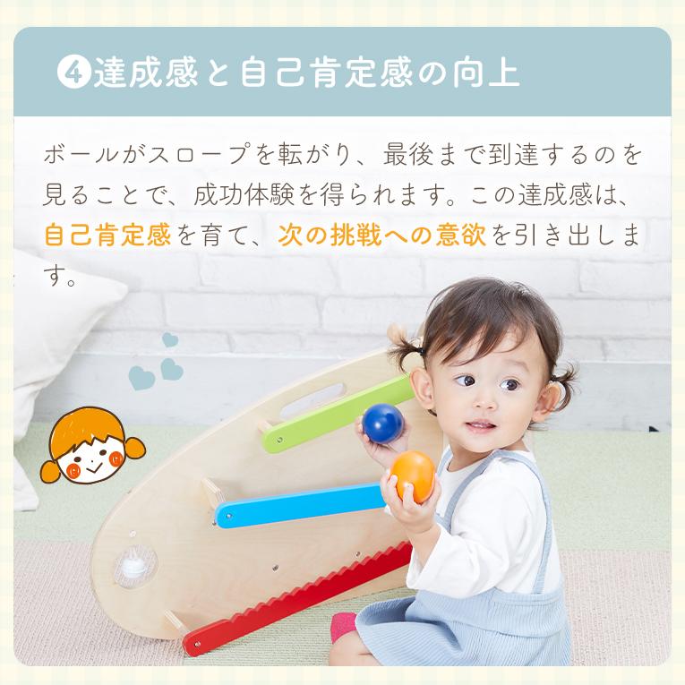 他にはない両面スロープでボールが「いないいないばあ」する楽しい仕掛けに繰り返し遊びにぴったり!