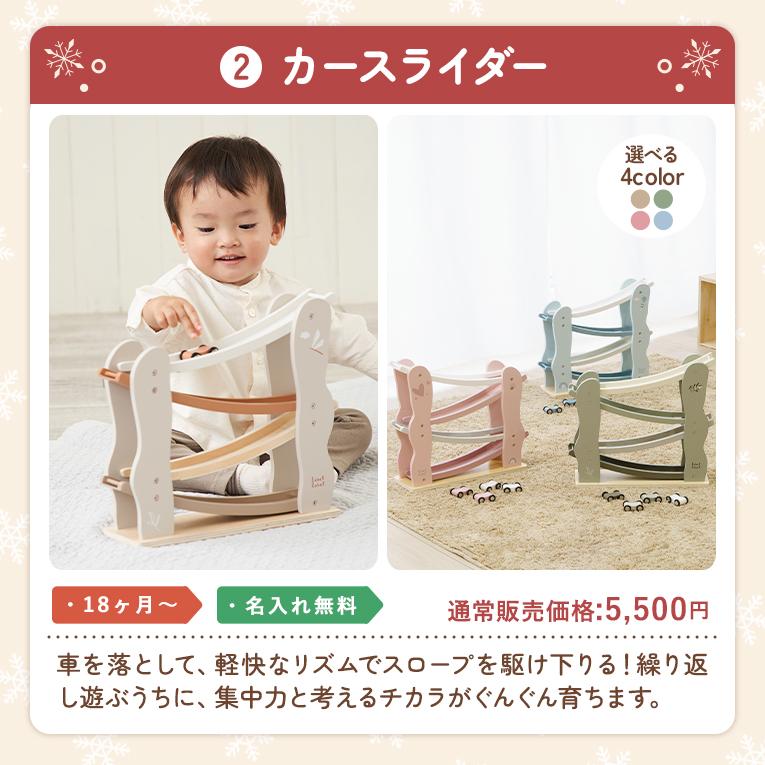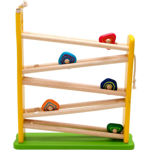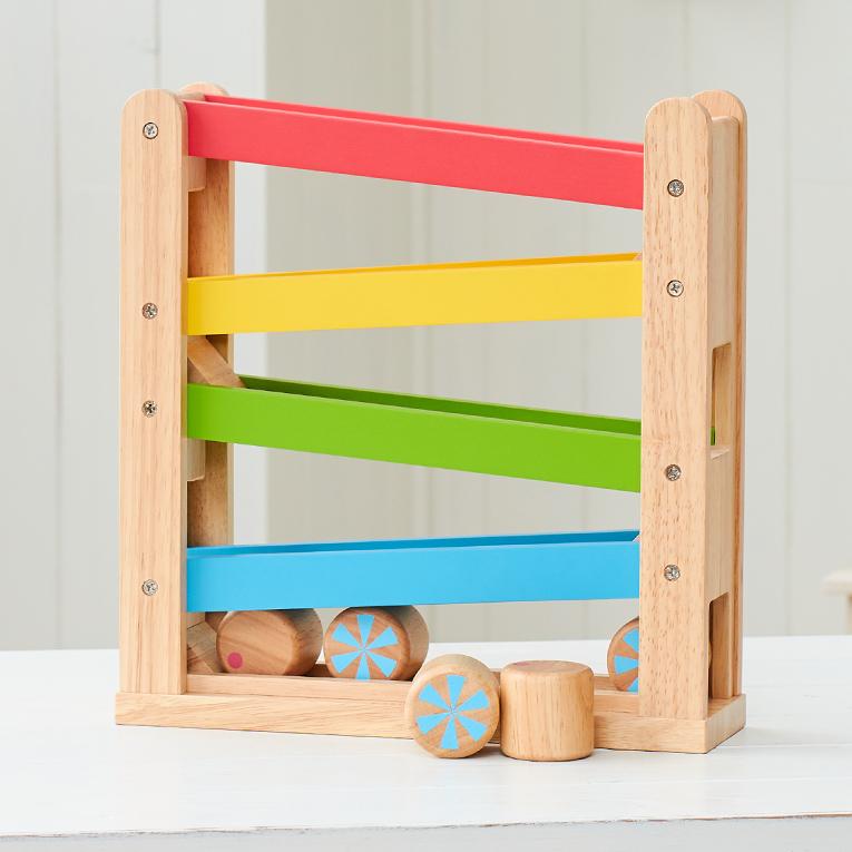 車を走らすスロープトイで車をつまんで指先の発達を促します。上手に走り切った時の達成感が楽しい♪