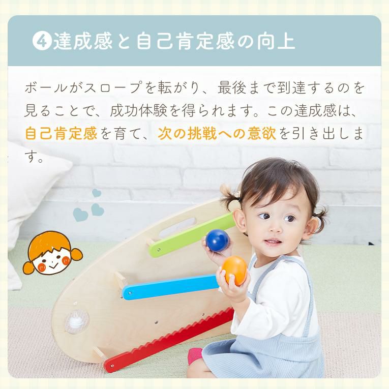 ボール落としだけじゃなく、叩いて遊べる楽器もいっしょなので、部屋の中が散らからず、いろんな遊びができるのがいいと思います。