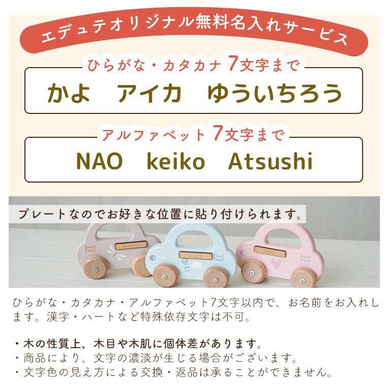 木の優しい色味にオリジナルの名入れ、とても気に入っています。丸や三角や四角など定番の形だけじゃないのも楽しいです。