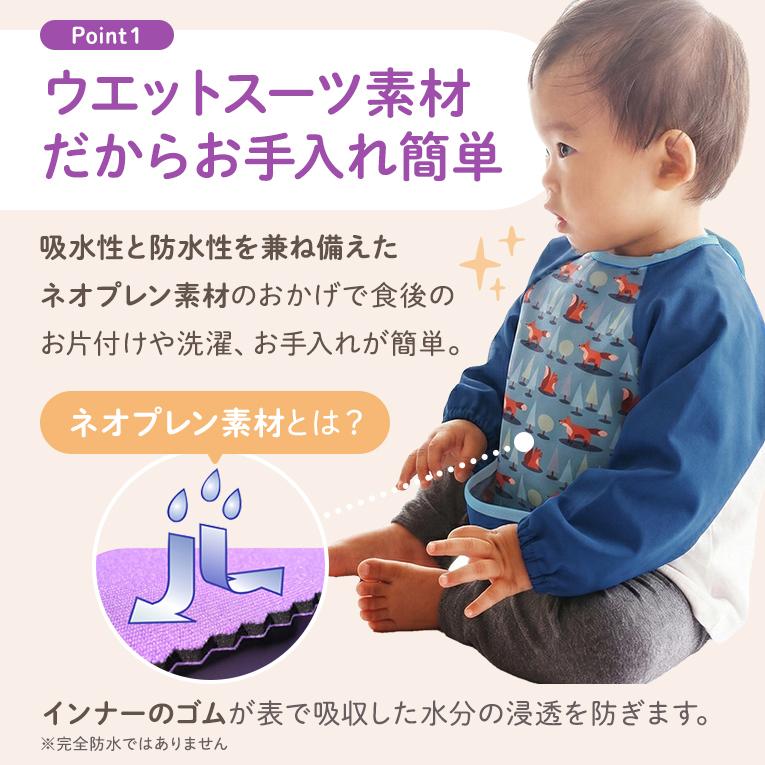 ○ウェットスーツの素材(ネオプレン)でできているので、食べこぼしや飲みこぼしもガードできます。