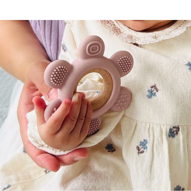 角のない形と柔らかく弾力性のあるシリコンが、赤ちゃん歯茎を優しく刺激してくれます。