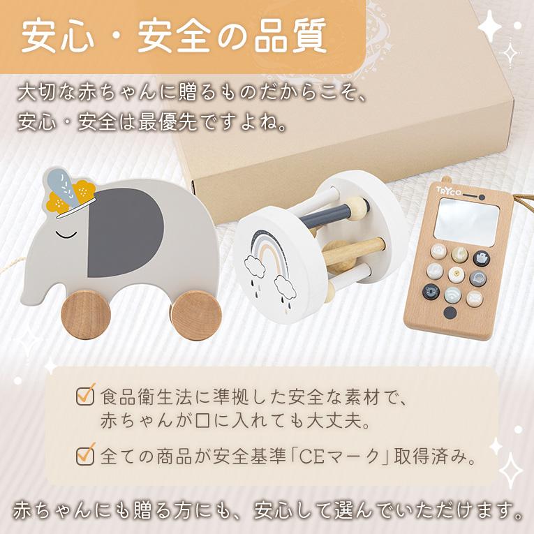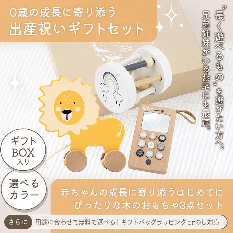0歳の成長に寄り添う出産祝いギフトセット。赤ちゃんの成長に寄り添う初めてにぴったりな木のおもちゃ3点セット。長く遊べるものを選びたい方へ兄弟姉妹がいるお宅にも最適♪