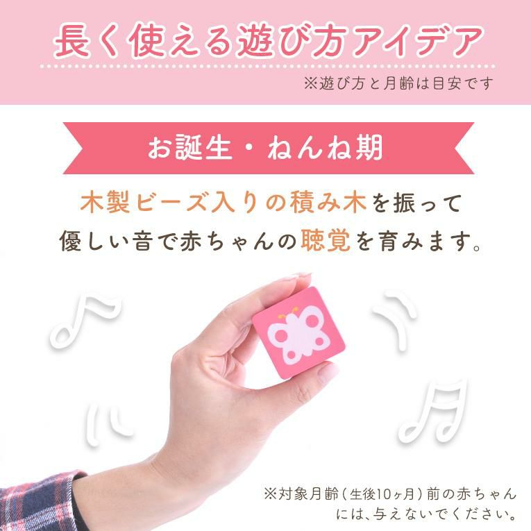 備考赤ちゃんの成長に合わせて、ドラム型の本体を転がしたり、ブロックを振って音遊びを楽しんだり、 大きくなったら色分け・カタチ分けといった知育要素を盛り込んだ遊びでも楽しめる、赤ちゃんにピッタリの木のおもちゃのファーストトイ。