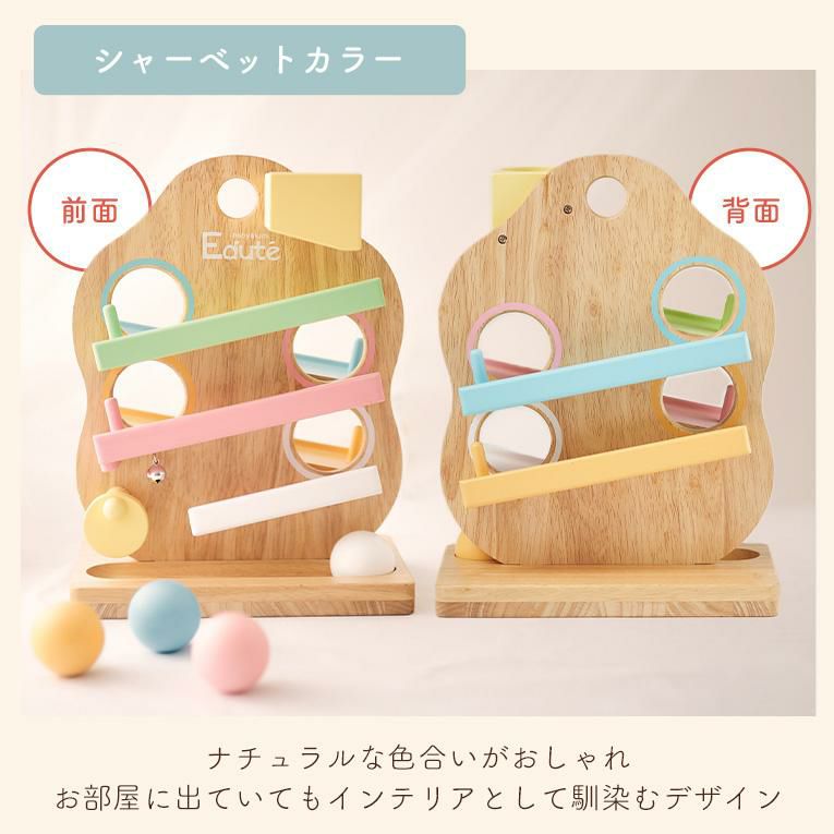 ボールの色とスロープの色との色合わせなど知育遊びも盛り込みました。