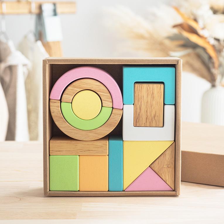 様々なカタチが作れて積むバリエーションが増えたり、お子さまの創造力をさらに育める知育積み木です。