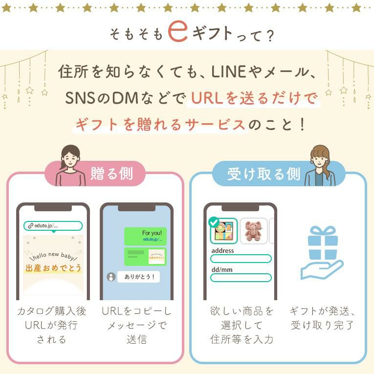 また直接贈るのではなく、出産後の母親が育児に専念できるように配慮する意味でも、郵送やeギフトを選ぶことは思いやりのある選択といえます。
