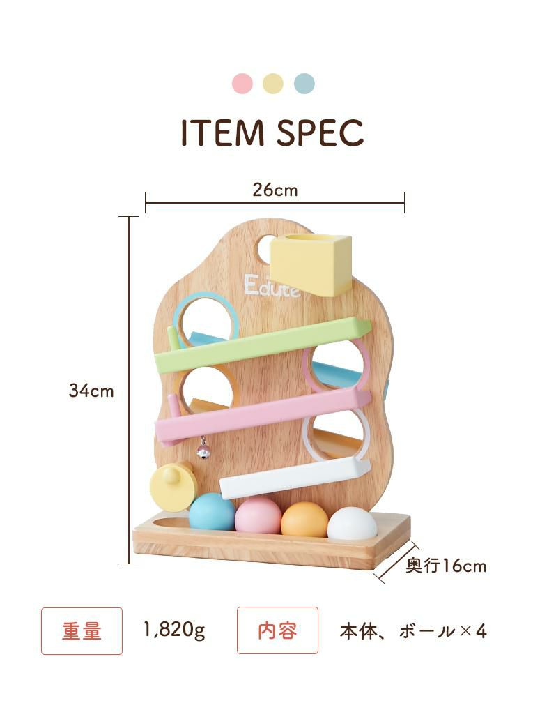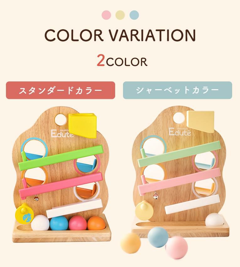 ボールの色とスロープの色との色合わせなど知育遊びも盛り込みました。