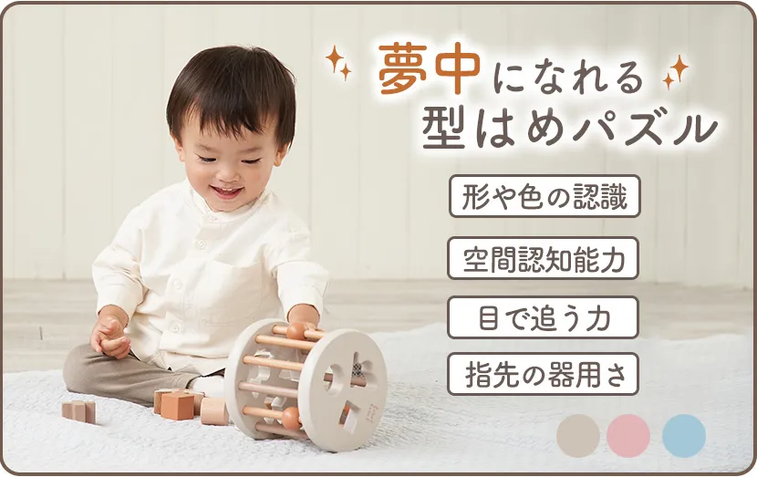 見た目の可愛さはもちろん、1歳さんが夢中になれる指先トレーニングの仕掛けがぎゅっと詰まったパズルです♪遊びを通して自然と指先の細かなコントロールが身につき、「ぴったり入った!」という最高の達成感が1歳さんの自信を大きく育ててくれますよ。 シェイプソーティングウィール