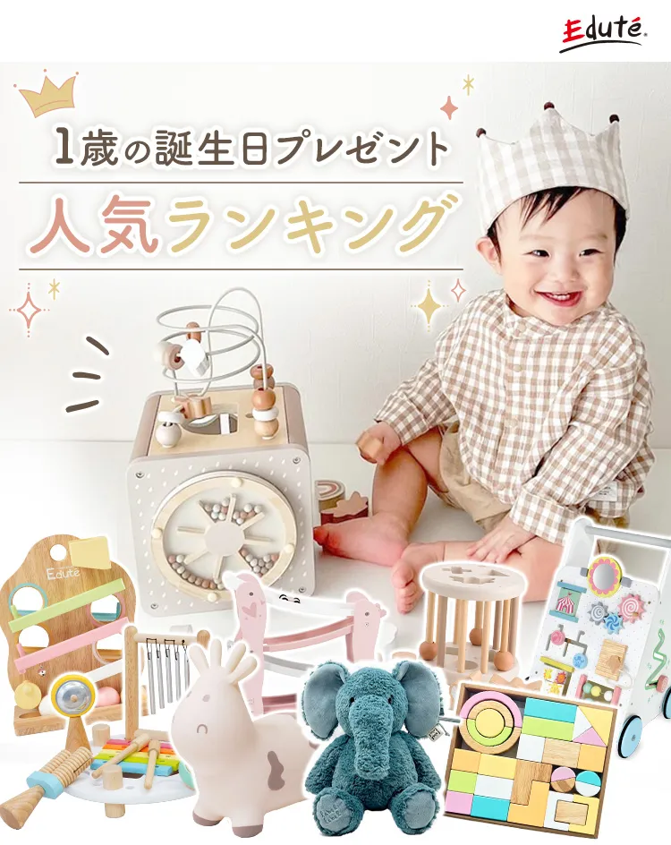 1歳は「つかまり立ち」から「ひとり歩き」へと進化する、一生で最もダイナミックに運動能力が変化する時期です。エデュテがおすすめするのは、「適切な重みがあり、転倒しにくい手押し車」。歩行の安定だけでなく、足腰の筋力や体幹、バランス感覚を自然と育みます。
