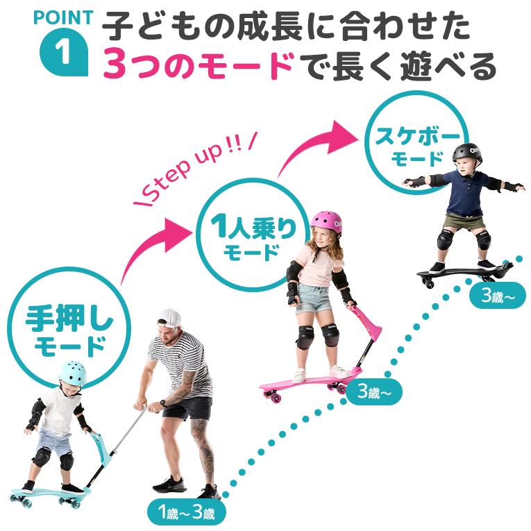 世界初★安全にバランス感覚を育む★3段階で楽しめる乳幼児用スケートボード