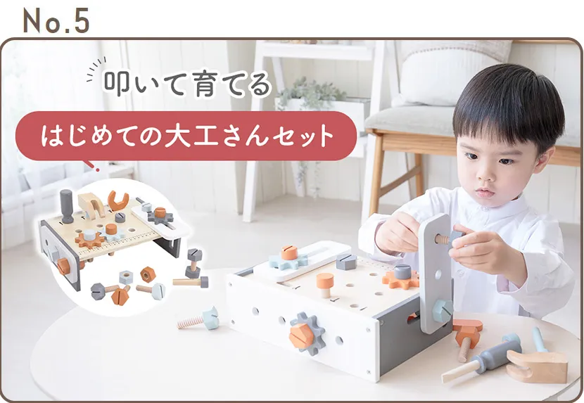 叩いて、ねじって、作ってみる!ごっこ遊びから本物体験へ──はじめての大工さんセット テーブルワークベンチ