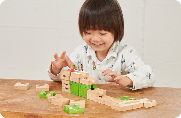 「できた!」「できなかった!どうして?」を繰り返し、考え、また取り組む。この経験が学習意欲や学ぶことの楽しさに繋がっていきます。遊び方が決まっているような受動的な玩具ではなく、自分で創意工夫し、達成感の得られる自由度の高いおもちゃを準備してあげたいですね。
