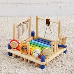 太鼓と木琴の表と裏を使って大変楽しく遊んでいますが音は微妙な感じかも。