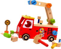 ボリュームたっぷりのパーツを組み合わせて、消防車のハシゴや標識を作ったりと遊び方が広がる大工おもちゃ。 アクティブ消防車