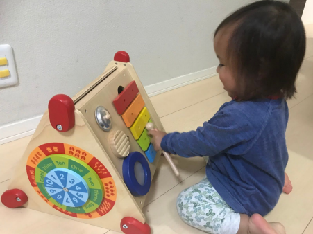 「なにができるのかな~?」と、組み立てている間もずっと横にいた娘。 出来上がると目をキラキラさせながらすぐに遊びだしました!