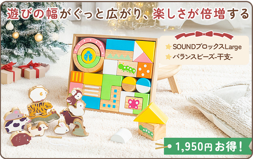 初めてにぴったりな音の鳴る積み木【SOUNDブロックスLarge】&十二支の干支が可愛い【バランスビーズ干支】 SOUNDブロックスLarge×バランスビーズ干支 |