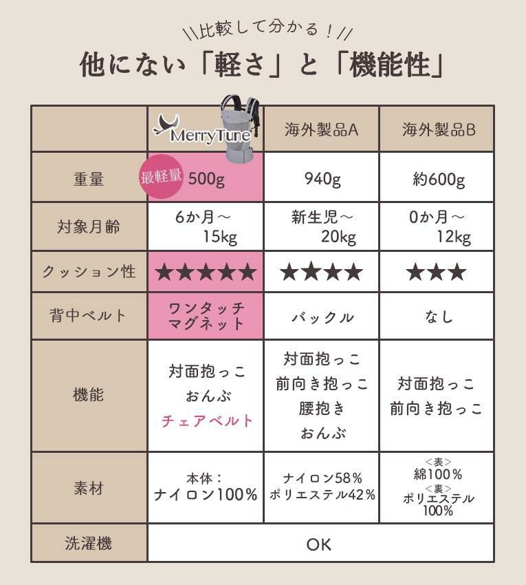 他の画像を見る メリーチューン抱っこ紐<6ヶ月 1歳>Merry Tune(メリーチューン) 定価 ¥ 31,900 のところ 当店特別価格 ¥ 15,950 税込 法人価格 販売を終了しました。 詳細を見る お気に入りに登録する 送料無料 0歳~