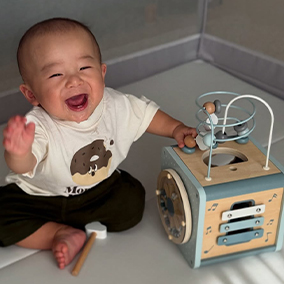 くり返し転がす遊びの中で、目で追う力や手の動きを育みながら、お子さまの「できた!」をそっと応援してくれます。